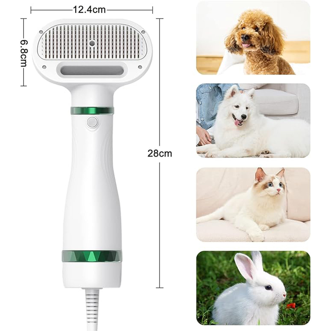 برس و سشوار برقی دوکاره با دکمه تخلیه سریع مو، مناسب برسکشی و خشککردن سریع سگ و گربه. دارای سری نرم، باد استاندارد و صدای کم برای حیوانات حساس.