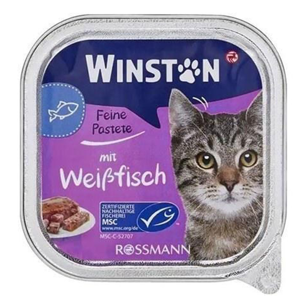غذای ووم گربه وینستون 100 گرمی، غذایی مرطوب و خوشطعم برای گربههای خانگی، غنی از پروتئین حیوانی و بدون افزودنیهای مضر.